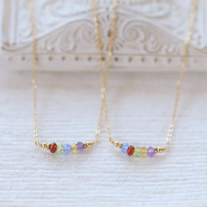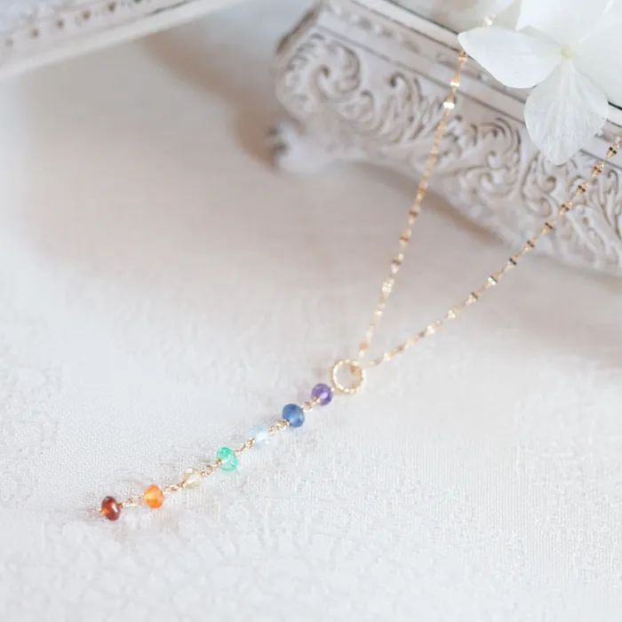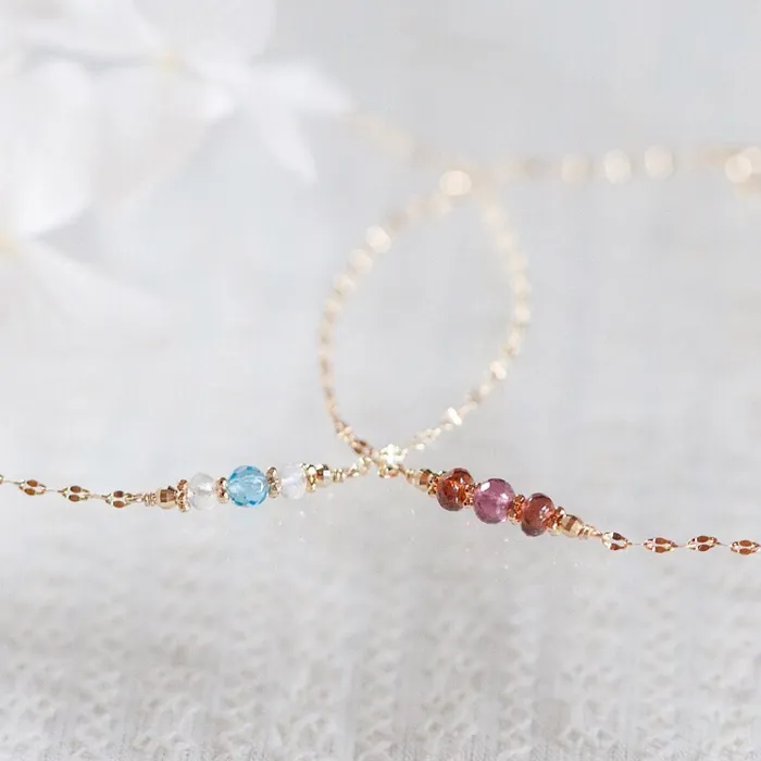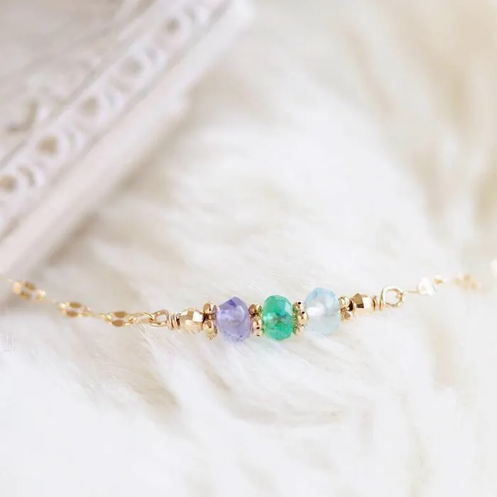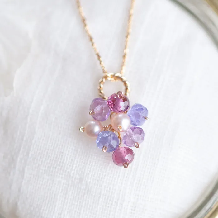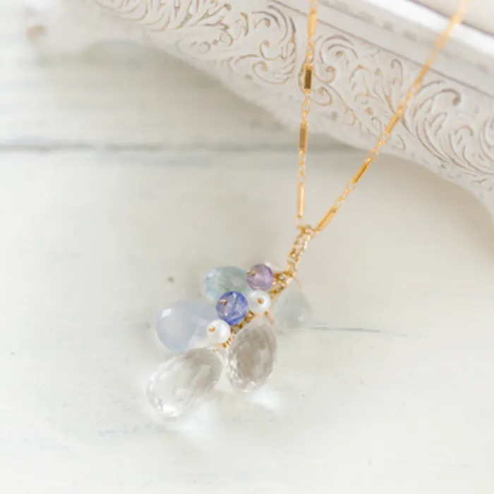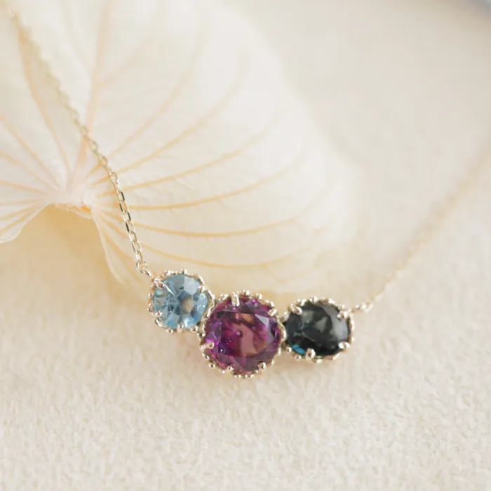 タンザナイト・エメラルド・ブルートパーズのリーフチェーンネックレス