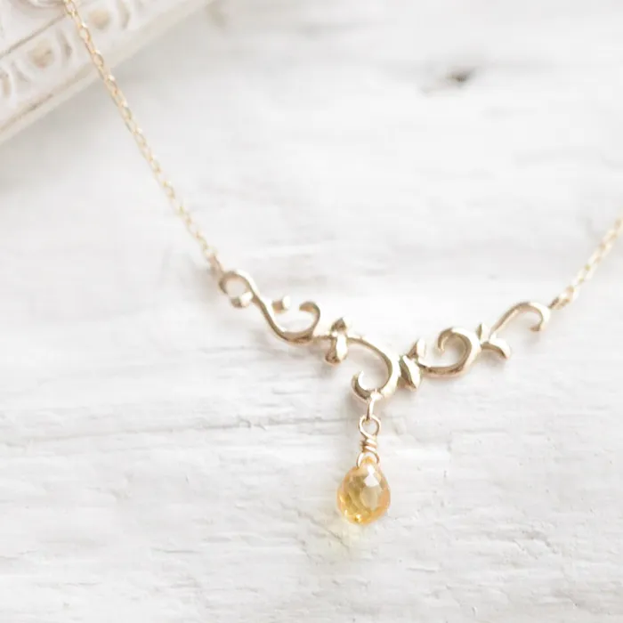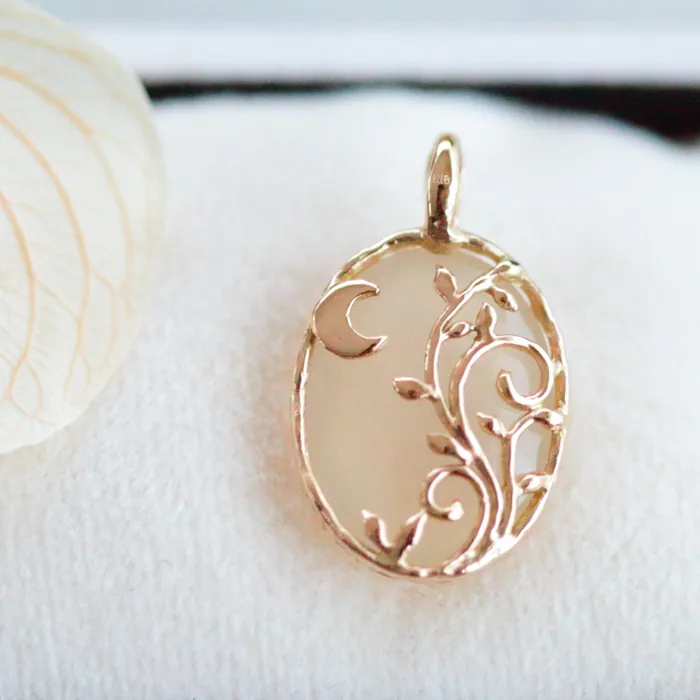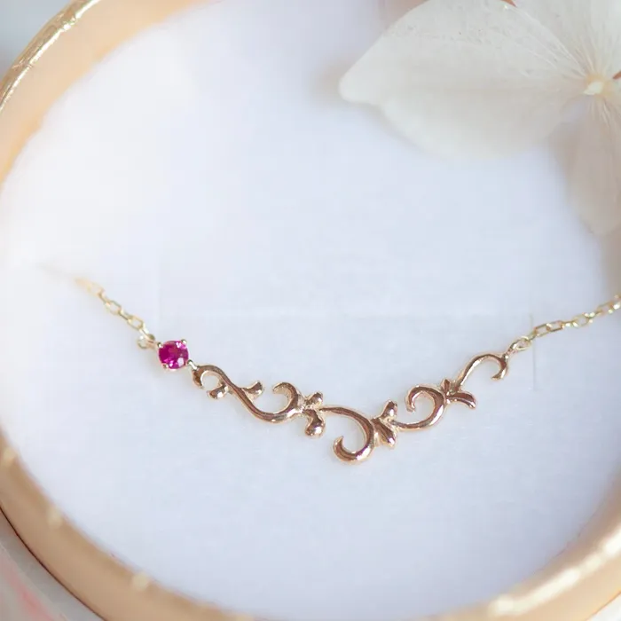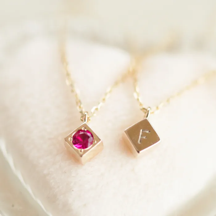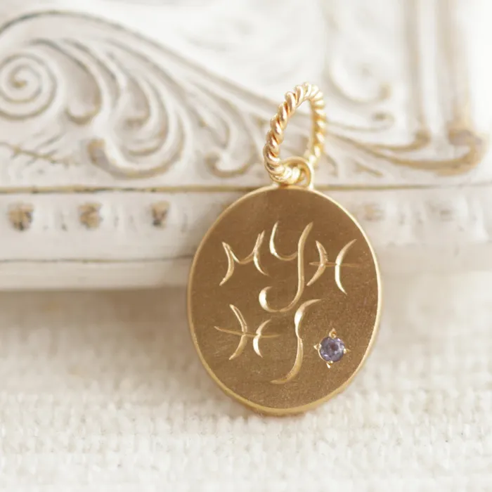 手彫りイニシャルと石を埋め込んだリバーシブルネックレス