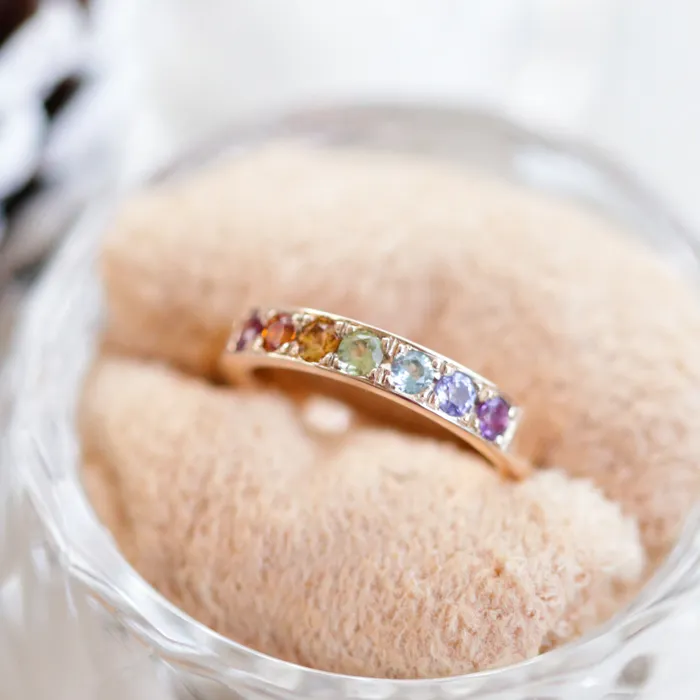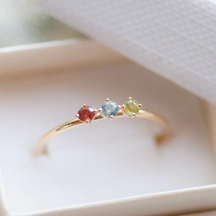 ガーネット・ブルートパーズ・ペリドットのご家族の誕生石リング