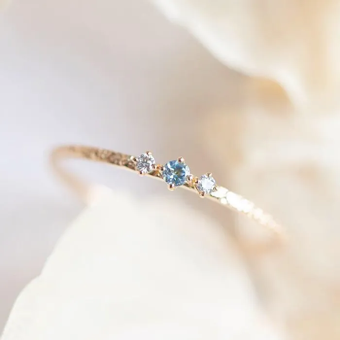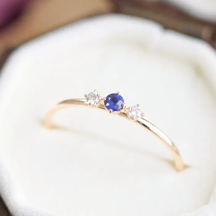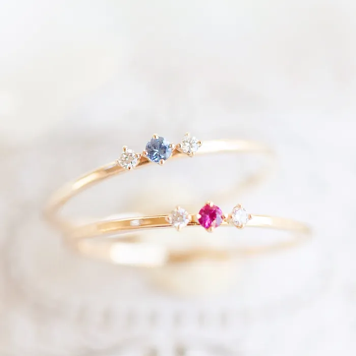 淡いブルーサファイア・ルビーとダイヤの誕生石リング