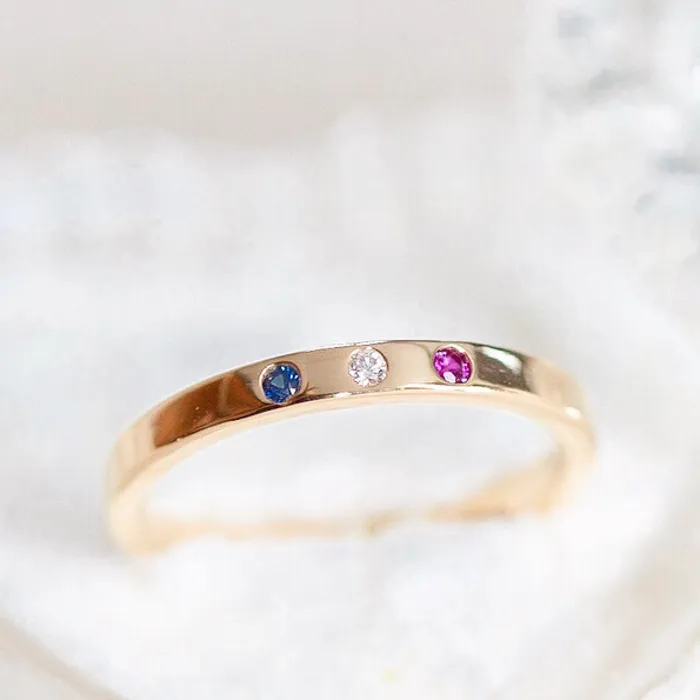 タンザナイト・ルビー・ブルーサファイアのご家族の誕生石リング