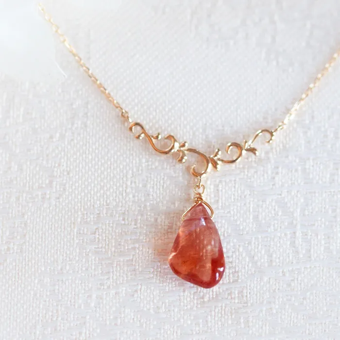 オレンジムーンストーン・スモーキークォーツのネックレス
