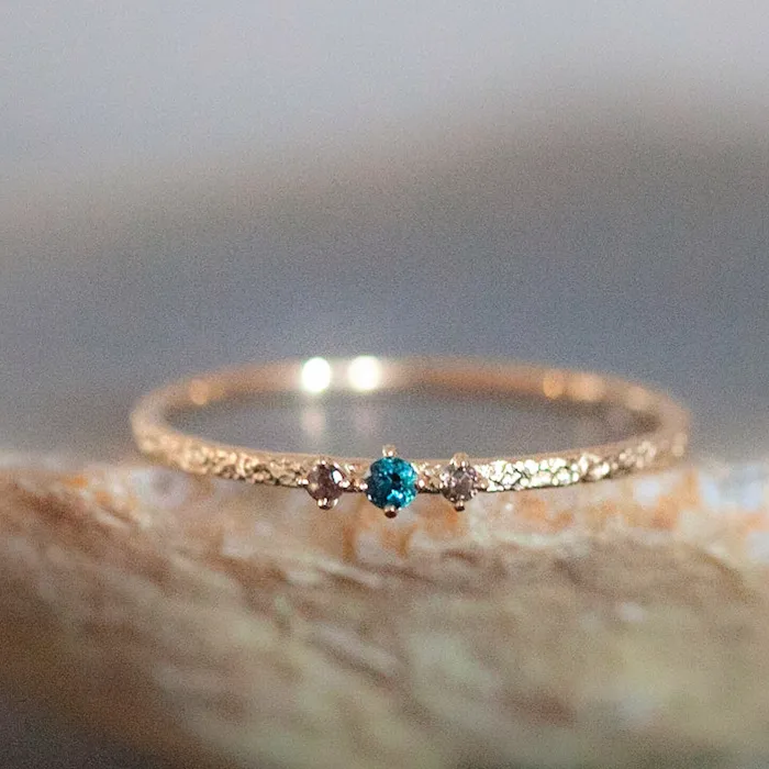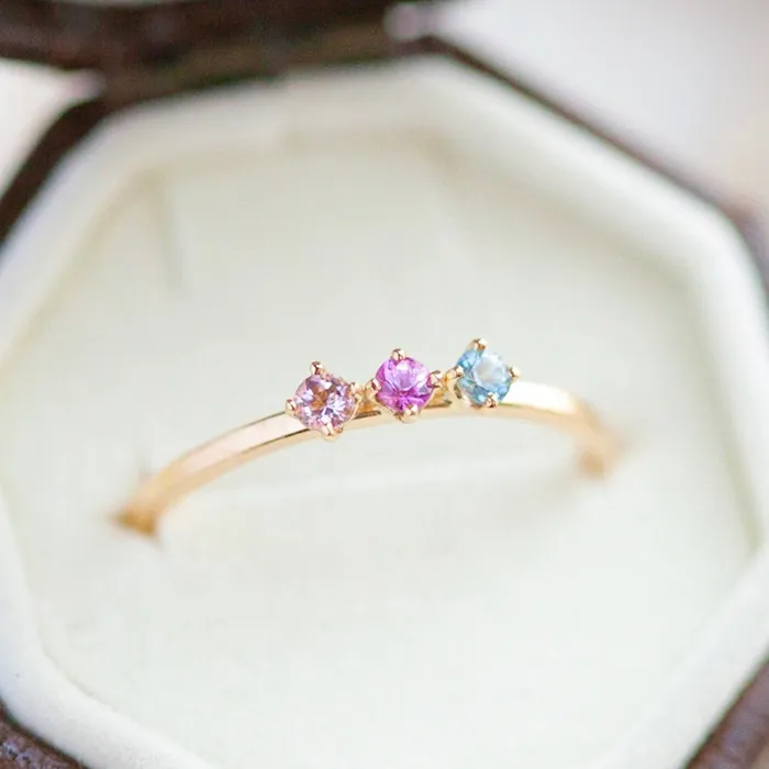 モルガナイト・ピンクサファイア・ブルートパーズの誕生石リング