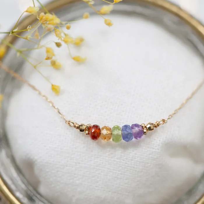 【実例473】クリスタル・ブルーサファイア・ガーネットのステーションブレスレット -