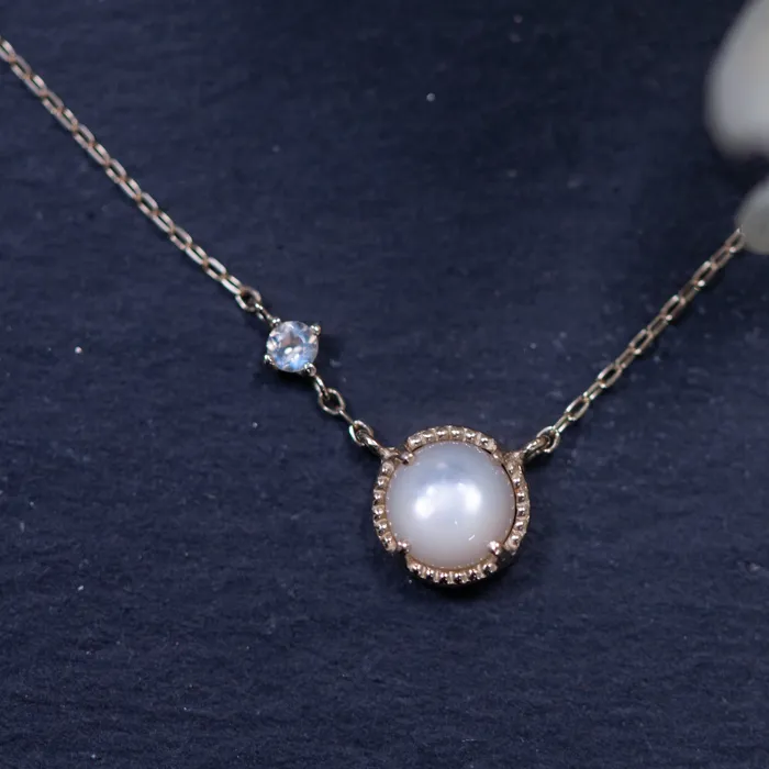 【実例491】白蝶貝とブルームーンストーンのネックレス -