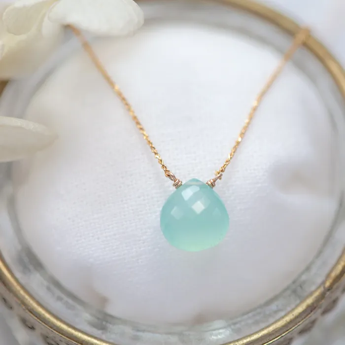 【実例493】シーブルーカルセドニーの1粒ネックレス -