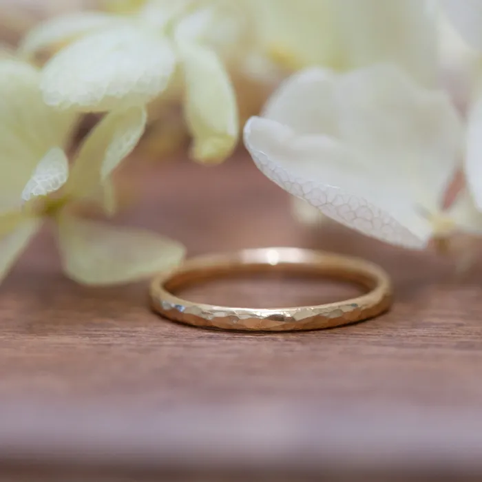 【実例474】ダイヤを埋め込んだ1.7mm幅の槌目リング -