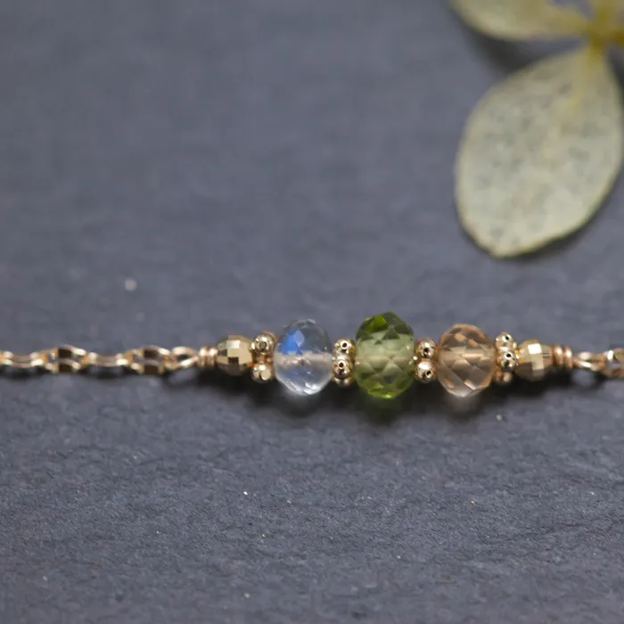 【実例456】ペリドットのステーションブレスレット・アジャスター先端にレモンクォーツ -