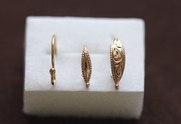K18:36,000円横幅3.5mmのピアス金具。唐草の模様が彫られています。シリコンキャッチ付き。