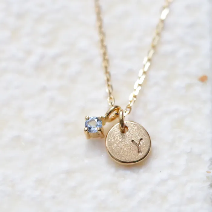 手彫りイニシャルと石を埋め込んだリバーシブルネックレス