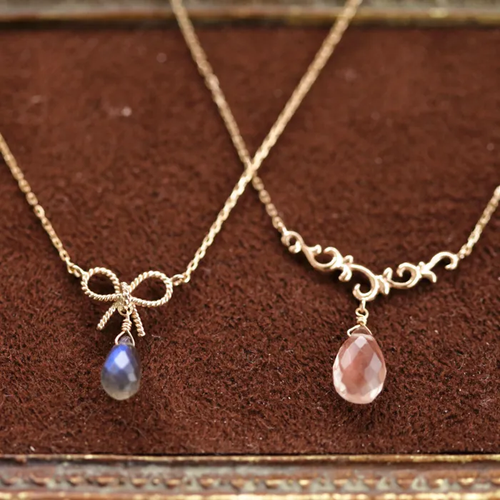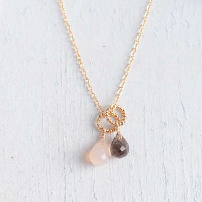 オレンジムーンストーン・スモーキークォーツのネックレス